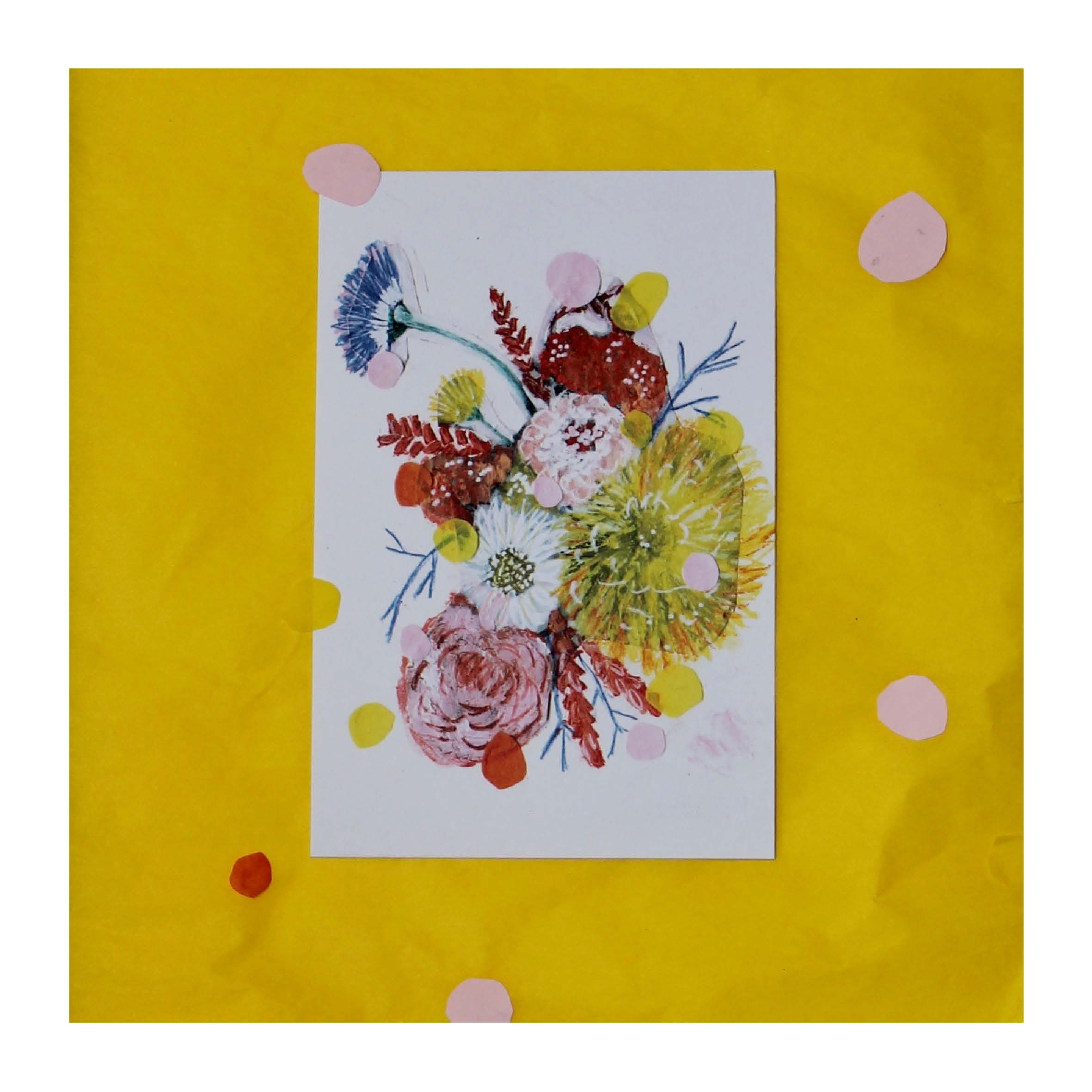 oliepastel, stift, acrylverf (en confetti) op papier, 2024